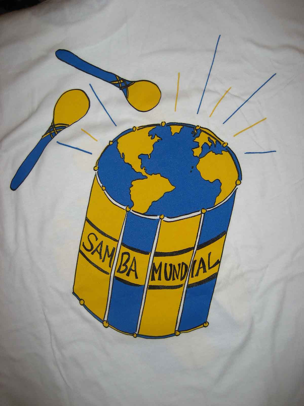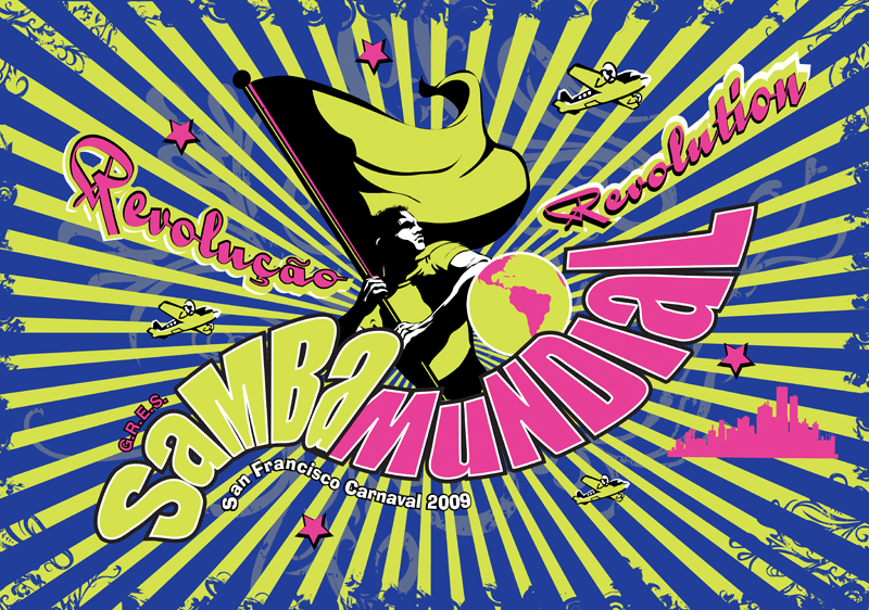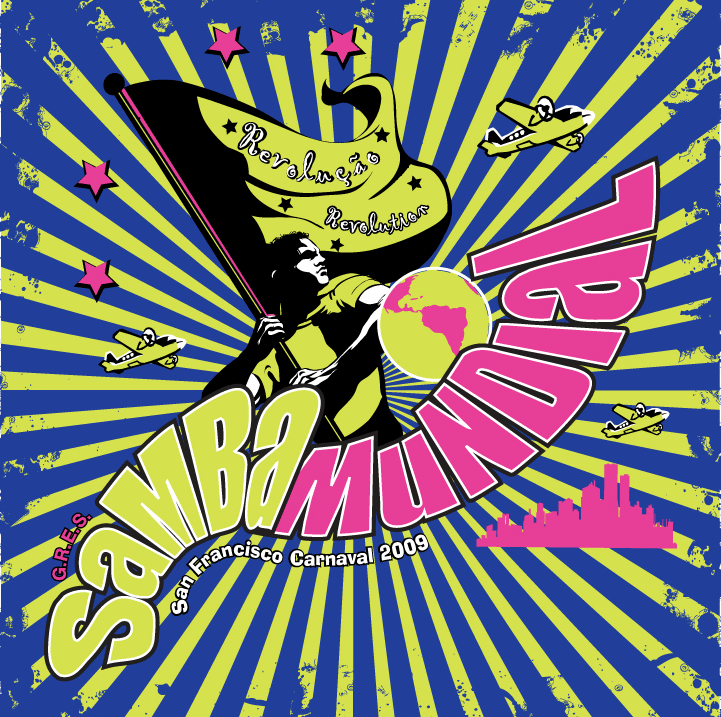 Enredo by Luis Dib and Brad Hamilton Colors = White, Yellow, Blue T-Shirt = White with new Blue/Gold Samba Mundial logo Artwork by Sandy Del Rio Float = Fita theme banner by Liz Sava |