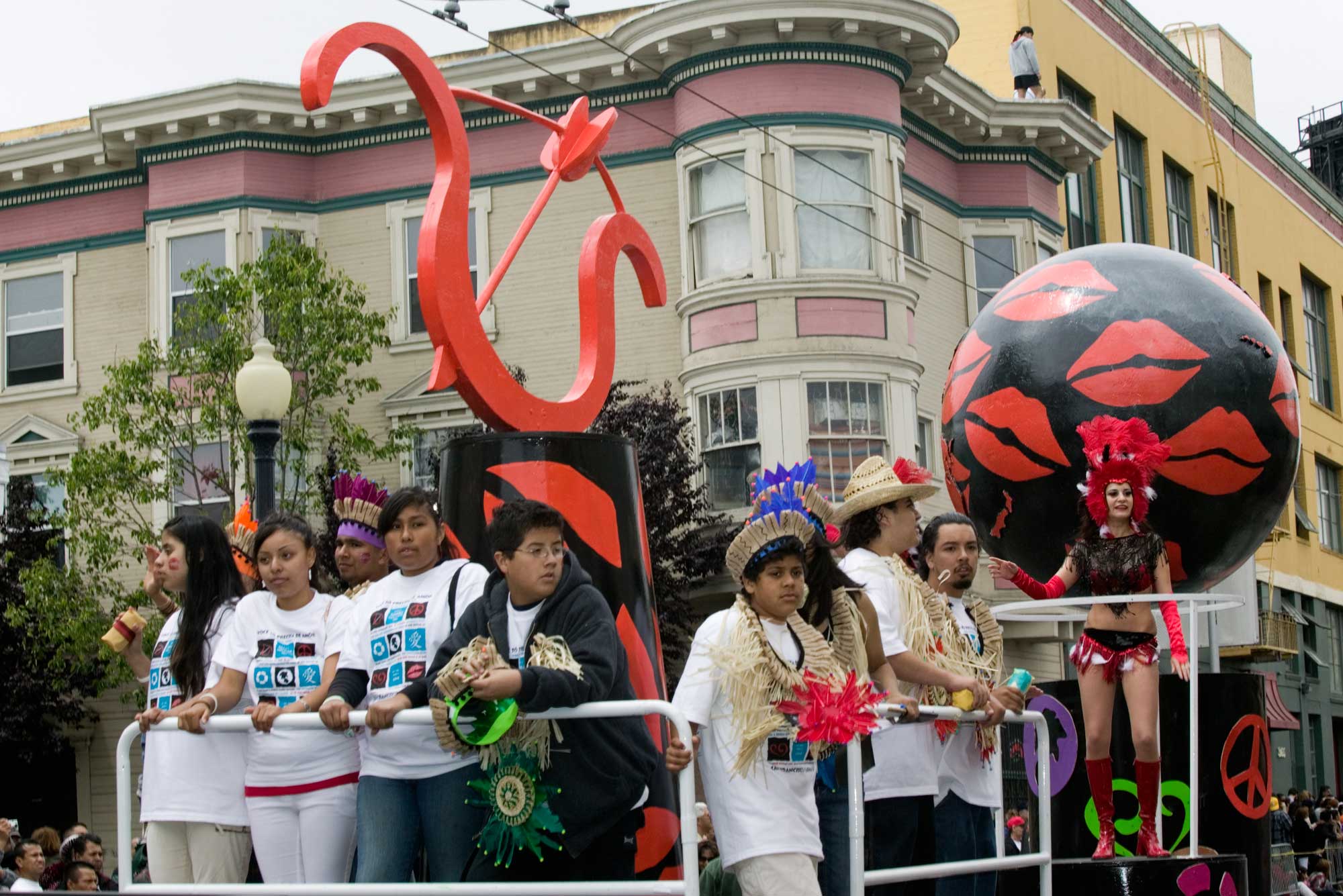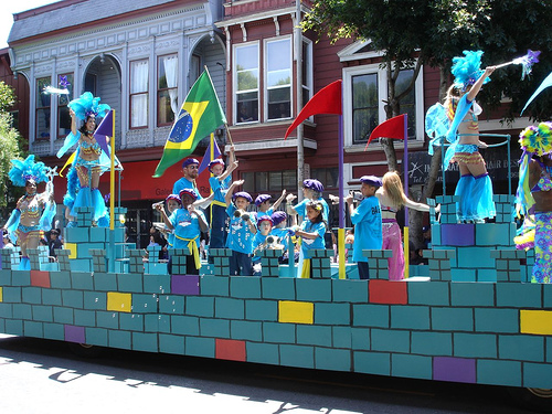 Enredo by Cristina Ribeiro Colors = Rainbow T-Shirt = White (with Rainbow letters and Blue/Green earth heart) Artwork by Nicole Marinkovich Float = Yellow truck with dancer platforms |