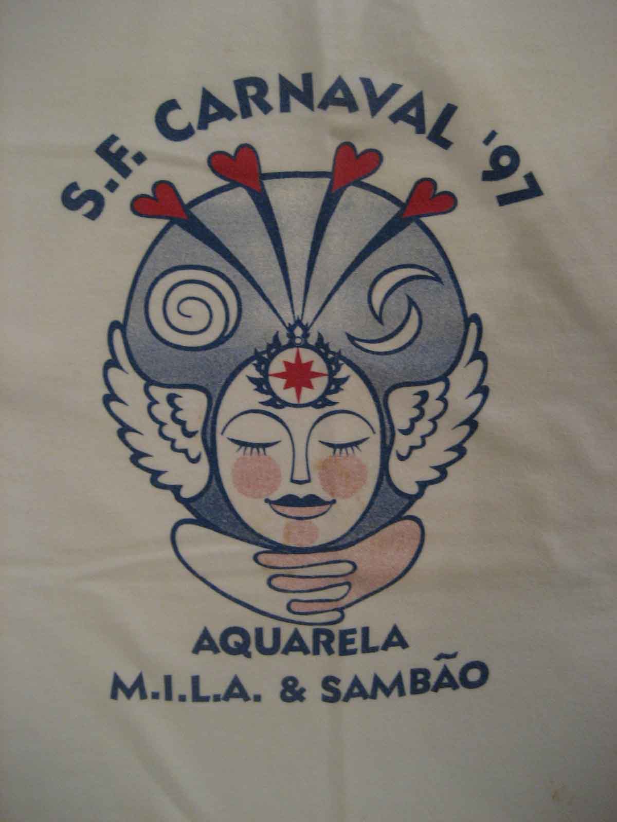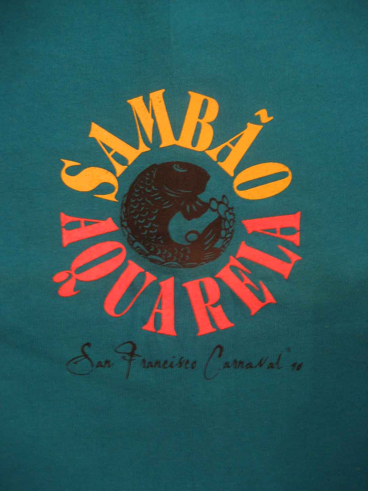 M.I.L.A., Sambão e Aquarela Enredo by Ivson Lins Colors = Red and Blue T-Shirt = Teal/Light Blue "Fish" logo with Aquarela |