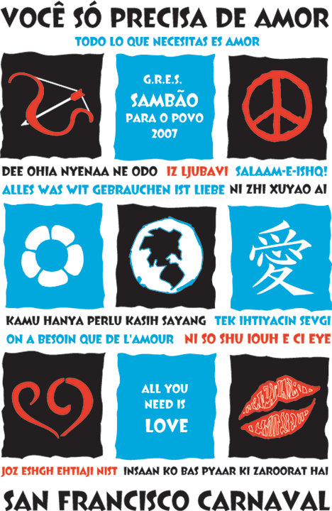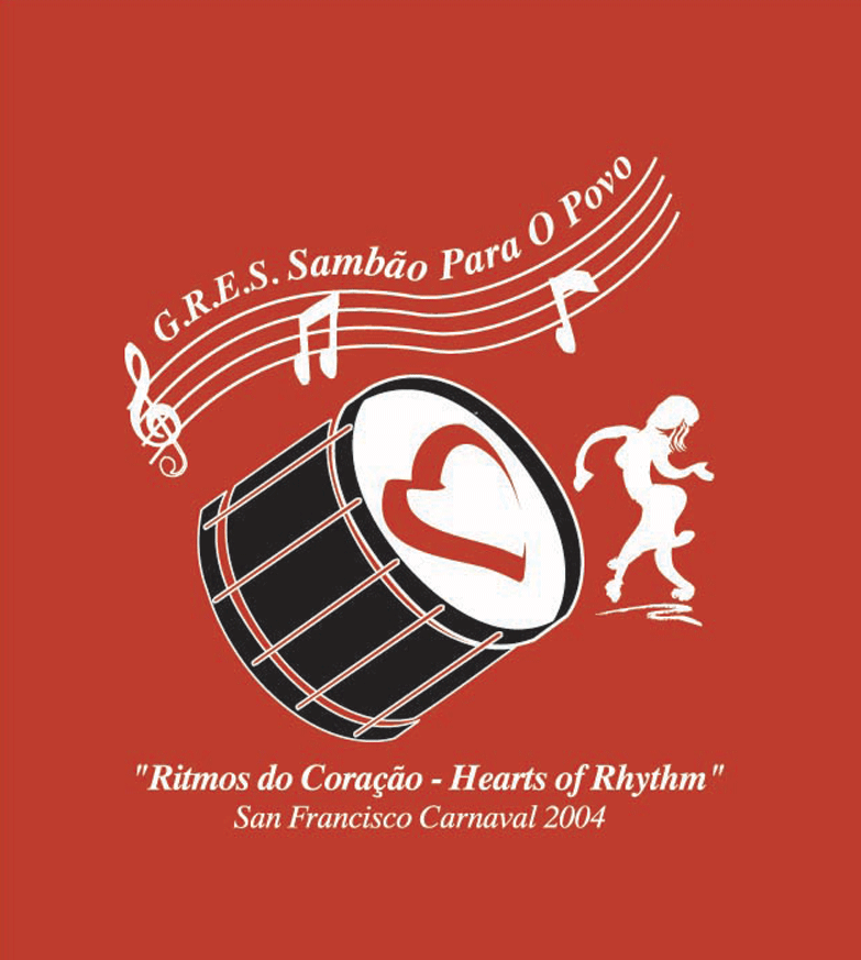 Enredo by Brad Hamilton and Luis Dib Colors = Red and Gold T-Shirt = Red (white "souvenirs" also produced) Artwork by Nicole Marinkovich Float = Giant Red Heart with tiny Drums and Hearts |